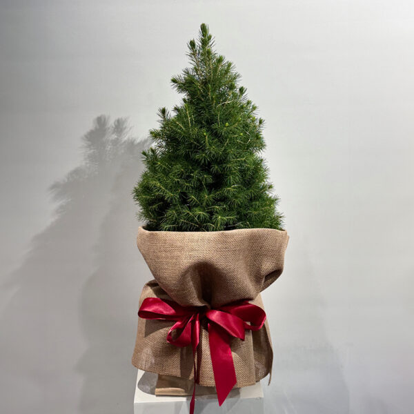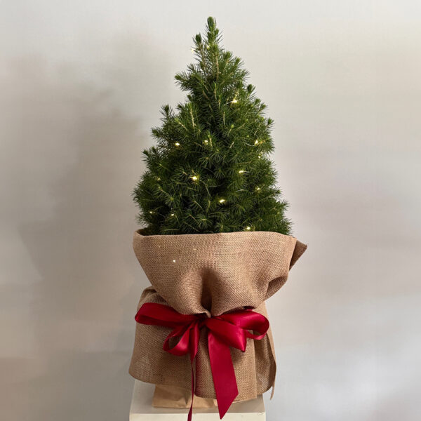 The cutest tree around standing approximately 70cm high wrapped in Santa’s sacking with red satin ribbons. For extra festive fun our divine size includes seed fairy lights complete with batteries